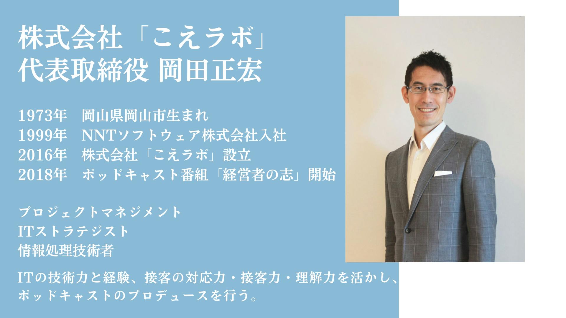 はじめまして。株式会社「こえラボ」代表の岡田正宏と申します。