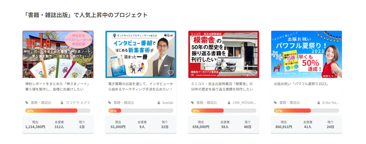 「書籍・雑誌出版」で人気上昇中のプロジェクトにも掲載いただいております