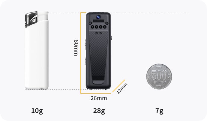重さはわずか28g(128GBメモリーカード含む)、500円玉4枚分とほぼ変わらない重さなので、長時間持っていても負担になりません。