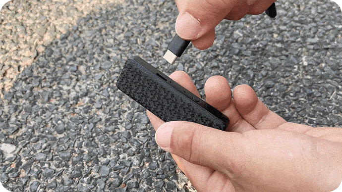 A13 には 850mAh のバッテリーが内蔵されており、3 ~ 4 時間のビデオ撮影と約10 時間のオーディオ録音が可能です。充電がないときは、充電用のパワーバンクに接続することもできます。