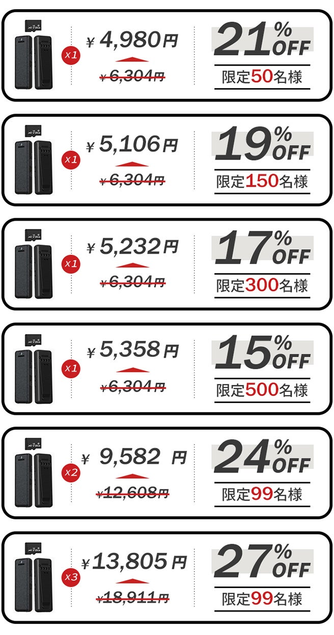 ・本プロジェクトを通して皆様から想定を上回るご支援を頂き、現在進めている環境から量産体制を更に整えることができた場合、正規販売価格が販売予定価格より下がる可能性もございます。