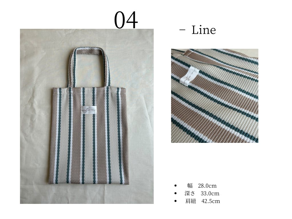 旅行などのお出かけ時に重宝するたっぷり大容量サイズです。色は「Line」「Wood」「Natural」3色展開でご用意しております。