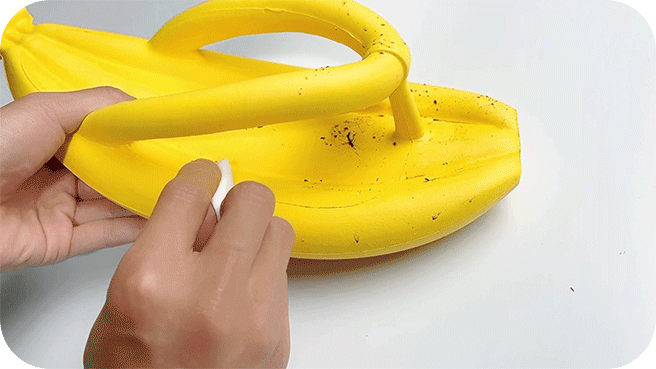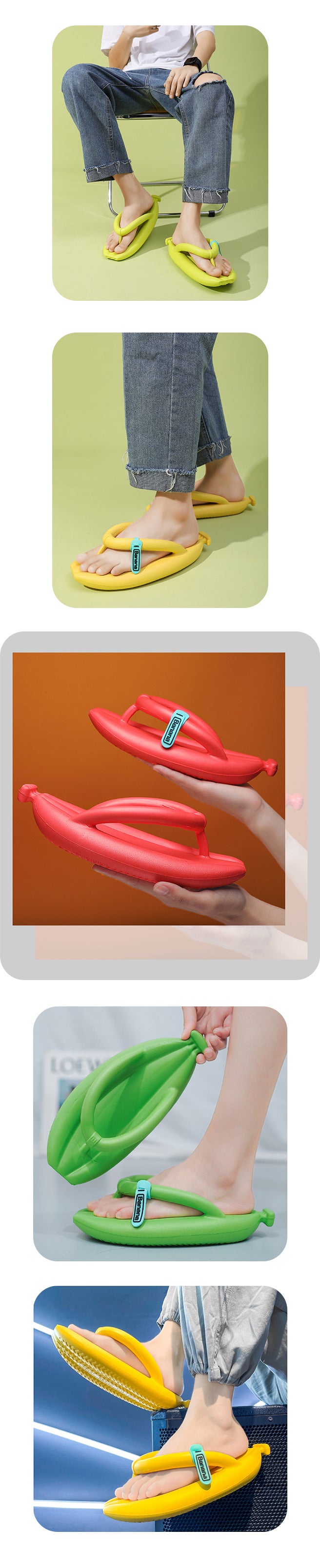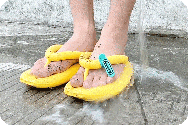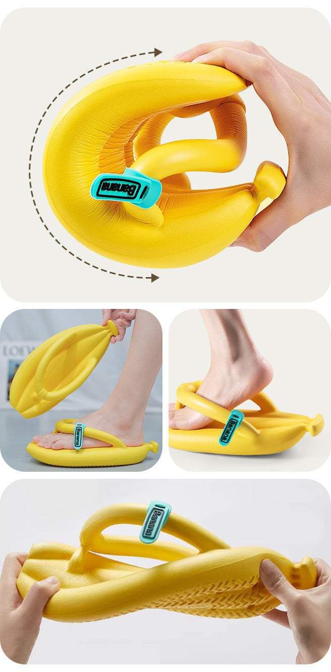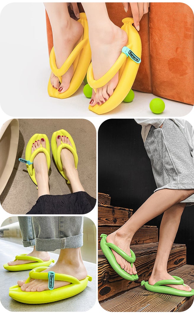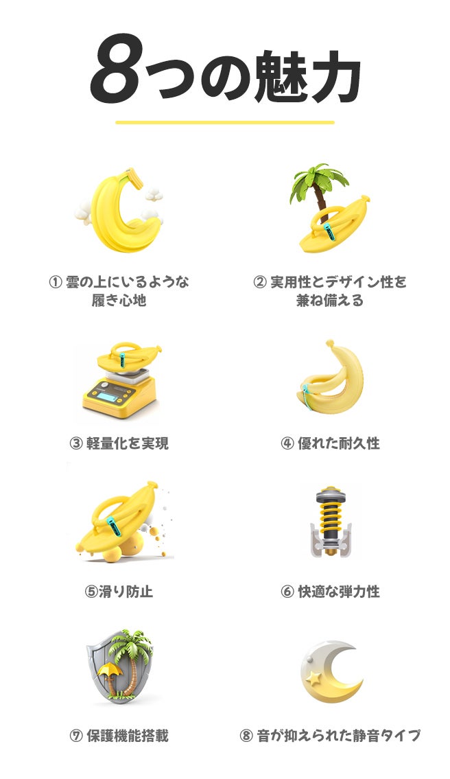 つい惹かれてしまうバナナのようなデザインです。軽量で滑りにくいだけでなく、鼻緒タイプなので通気性も抜群です。履いているだけでも気分が上がりそうなアイテムは、ギフトにもおすすめです。