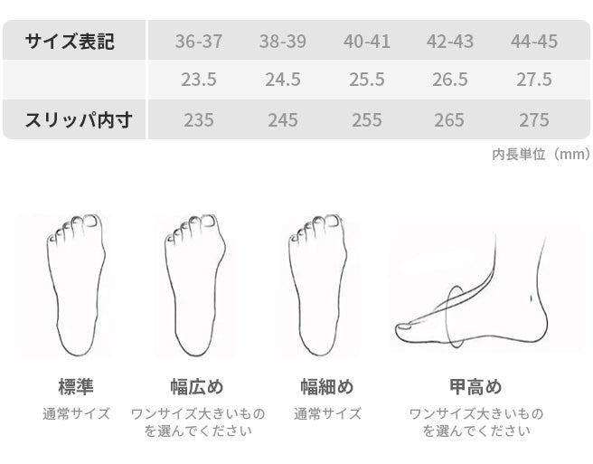 一般的には、1.0cm~1.5cm程度の余裕があるのが好ましいとされています。また、幅広・甲高の方は、少し大きいサイズをお選びください。
