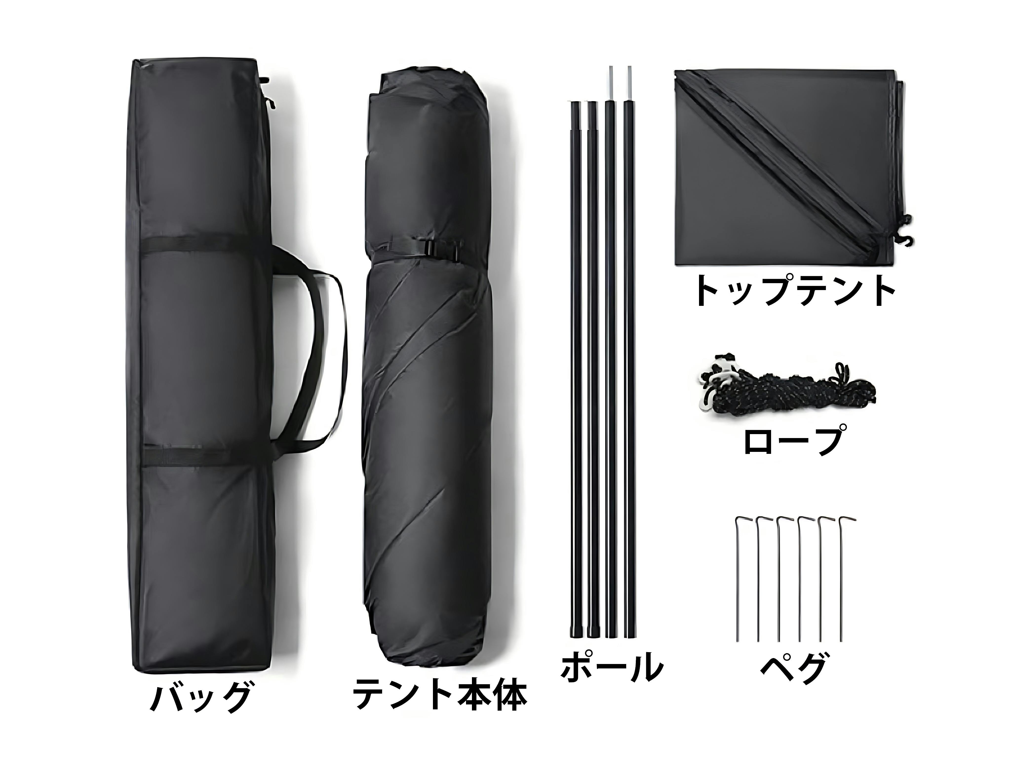 キャンプ用のテントでは68D、75D、150D、210Dなどが主流です。本製品は、非常に高い耐久性と撥水性を有する210Dのオックスフォード素材で作られております。