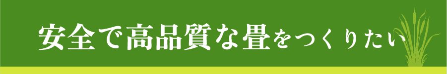 畳を作る人、使う人、自然環境すべてに優しい安全で高品質な畳をつくることです。