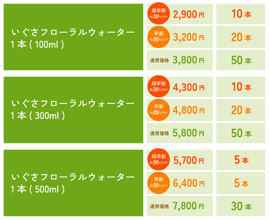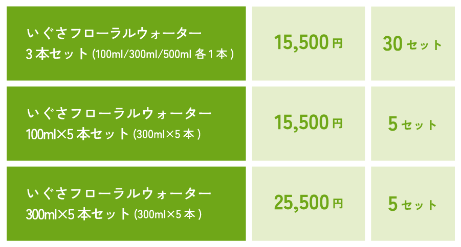 この特別チケットでご予約された方には、いぐさフローラルウォーターをかけ水としてご用意します。