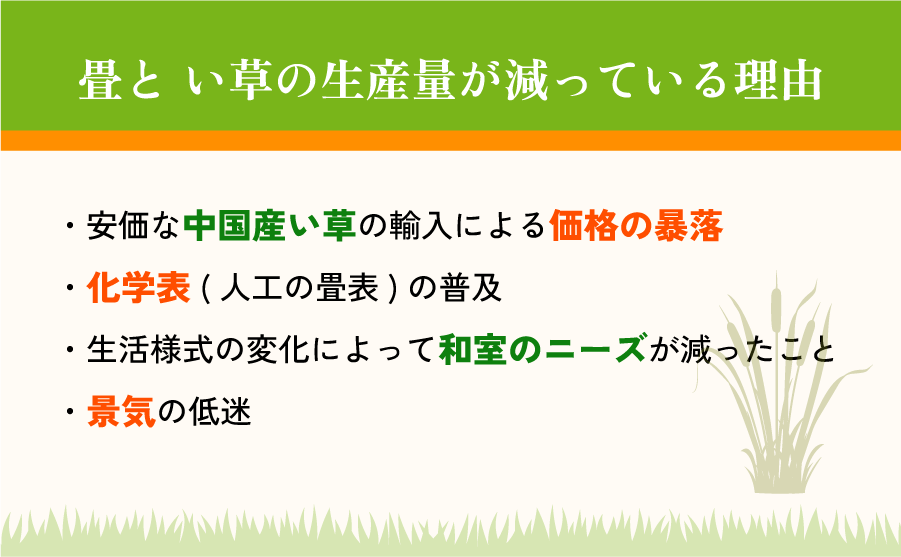 国内の畳生産やい草生産を守ることは伝統を守るという側面だけではなく、