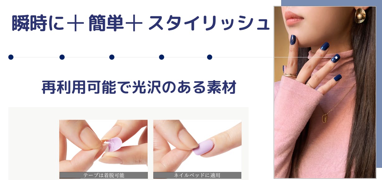 ネイルをしたい日の願望を叶える、手や足に何度も使えて瞬時に指が華やかになる。