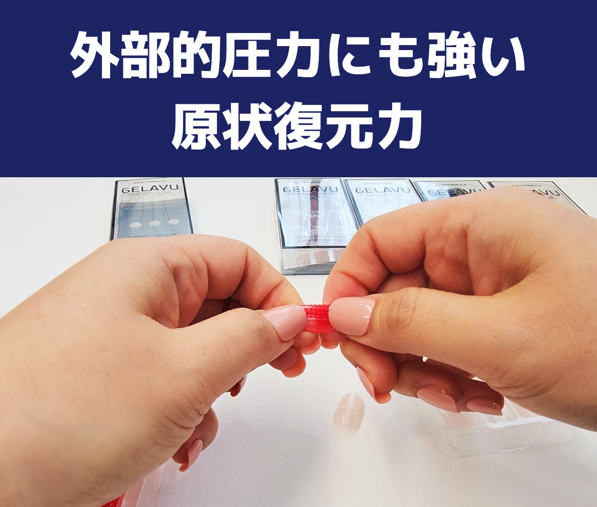 一般的なネイルチップは料理をしたり軽作業をすると割れたりヒビが入ってしまいがちですが、TPU素材のGELAVUは引っ張っても、潰しても、すぐ元に戻ります。傷や汚れもつきにくくキレイが長持ちします。