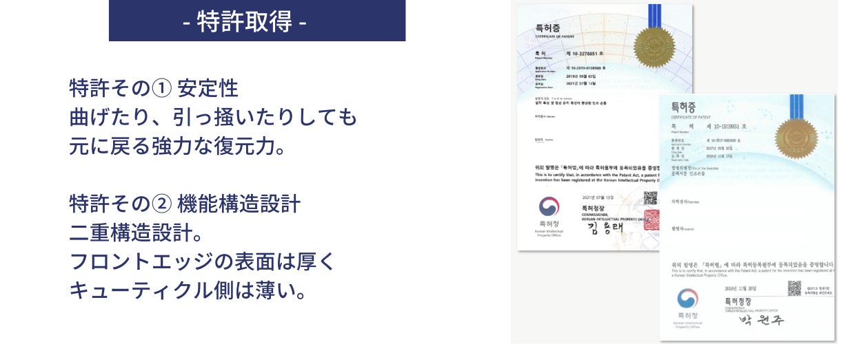 常に新しく、日常を彩るネイル商品を模索し続け2022年3月に業界で初めてTPU素材のネイルチップを開発して韓国で特許を取得しました。