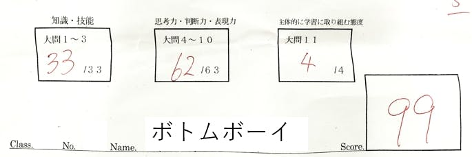 高校の最初の英語のテストでは、99点を取ってきました。偏差値35から大躍進です。