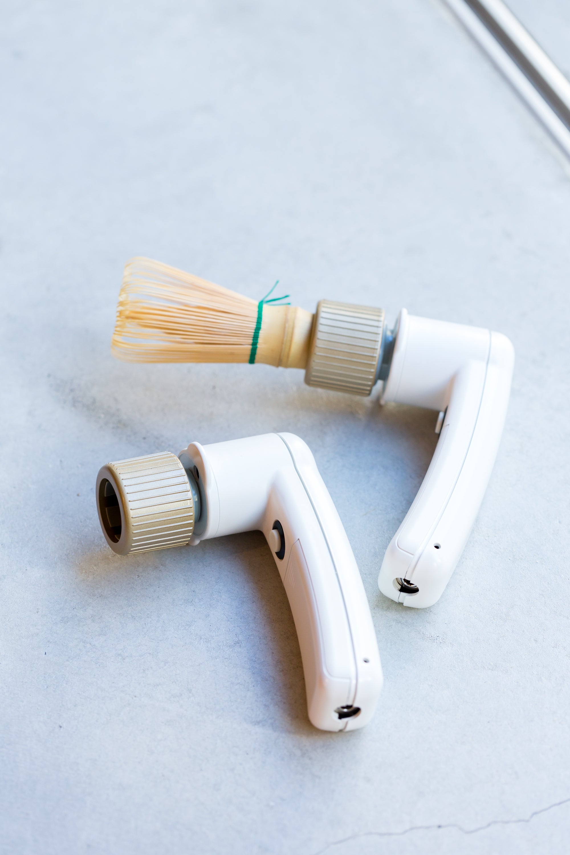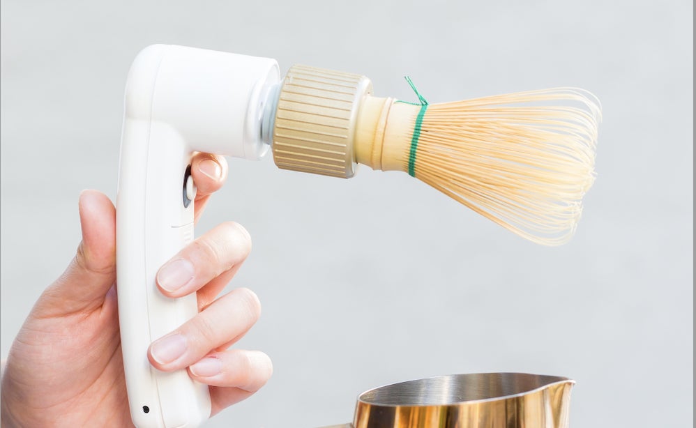 毎日使っていただけるように、キッチンで場所を取らないハンディなポータブルタイプにしました。調理器具と一緒に引き出しに入れることもでき、また電池稼働だから充電器も不要。いつでも気軽に取り出して抹茶を楽しむことが可能です。