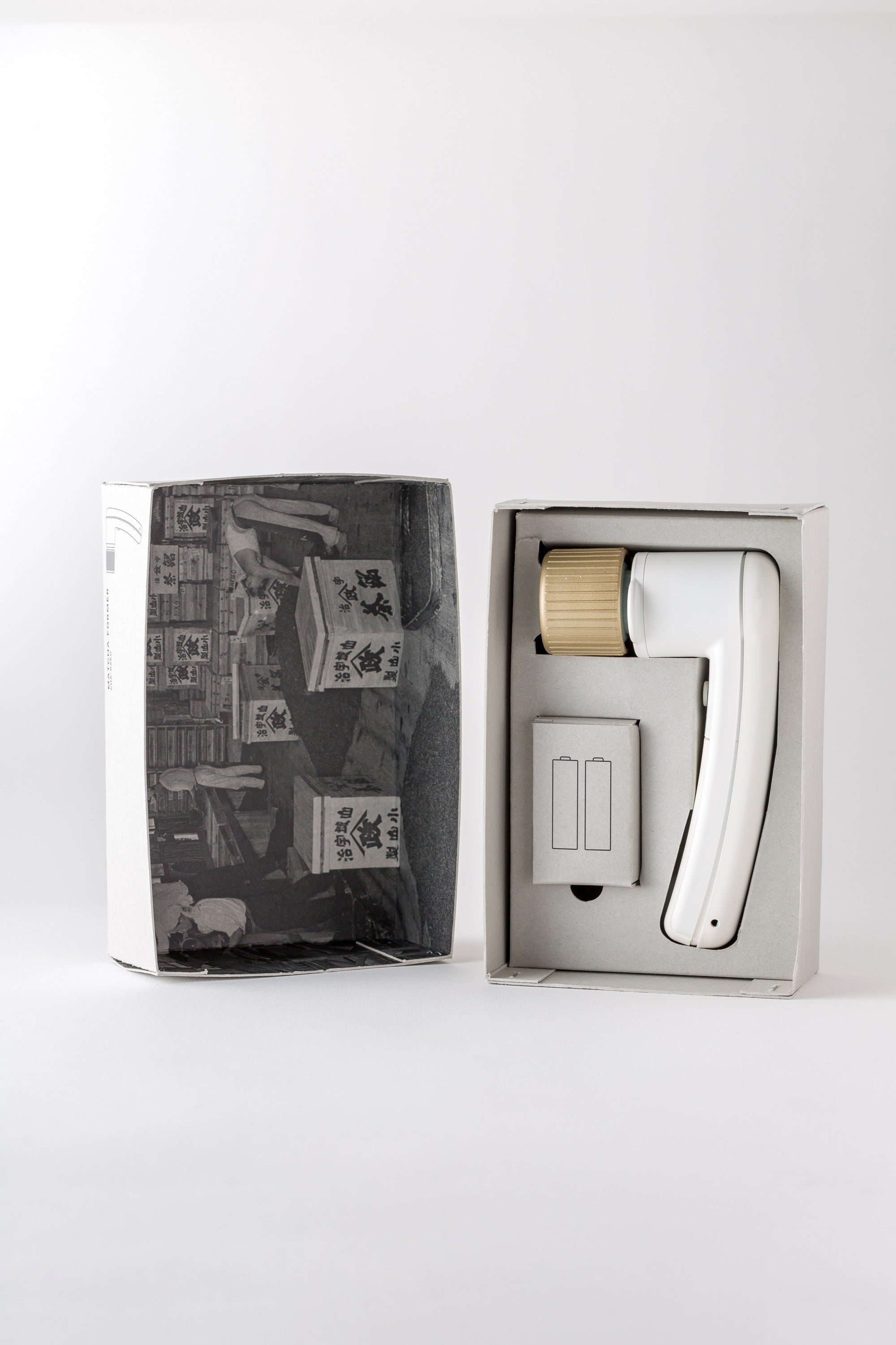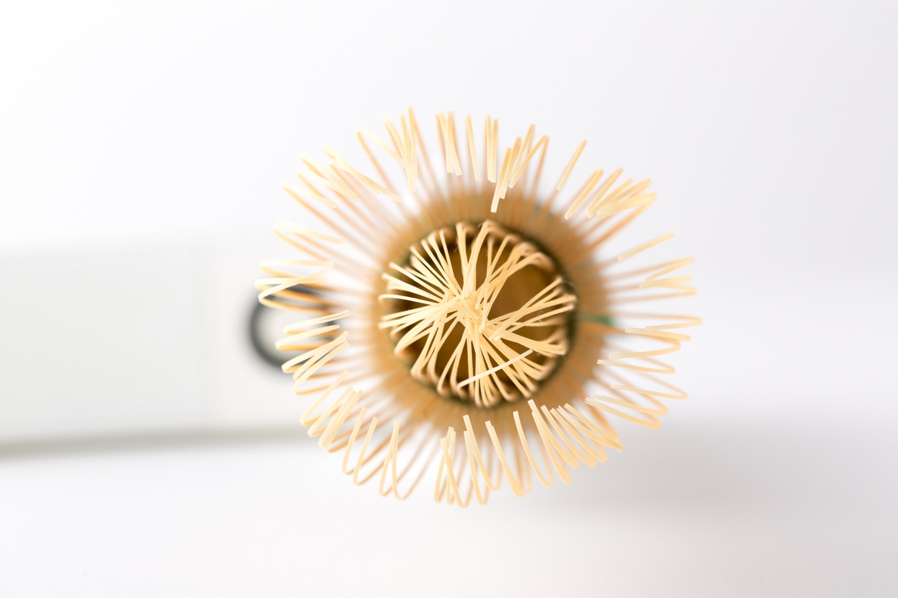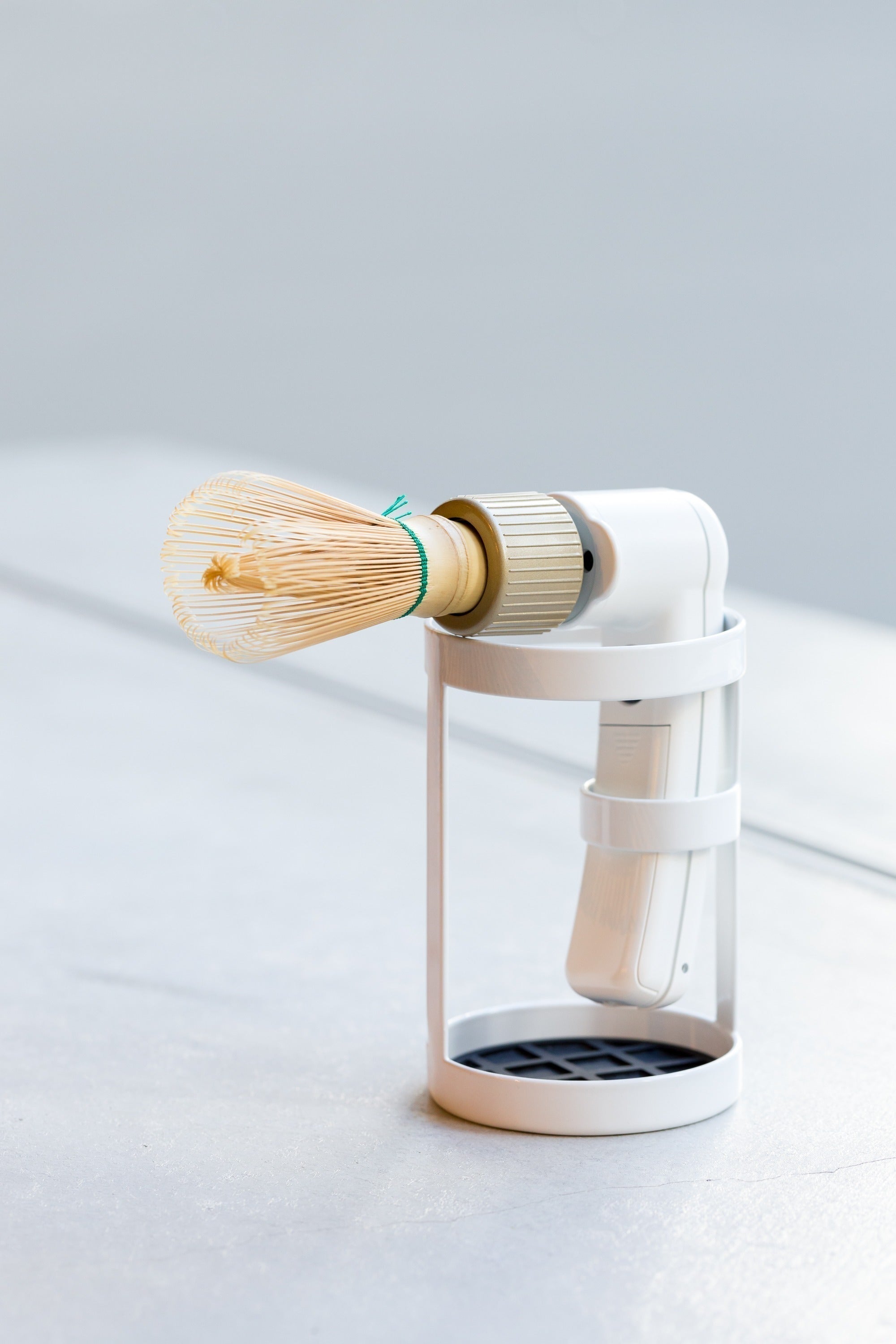 この電動茶筅をなんとかもっと多くの方々に使っていただけるものにできないか、ATELIER MATCHAの相談に快く協力してくださったウイルマンチームの皆様と共に、新たにATELIER MATCHAオリジナルデザインのホワイト×ゴールドの電動茶筅を制作。さらに電動茶筅のサイズにぴったりの太めの特別仕様の高山茶筅を用意、スタイリッシュかつ実用的な電動茶筅セットが完成しました。ATELIER MATCHAのカフェ店内で使うために開発しテスト生産したCHARAKUですが、店頭やイベントで見た多くのお客様に興味を持っていただき、購入したいというお声がけも多くいただいたたため、今回思い切って本格的な生産をスタートすることにしました。電動茶専CHARAKUを使うことで、初心者の方でも本格的な抹茶を気軽に楽しんでいただけるように、そんな思いを込めてこの電動茶筅をお届けいたします。