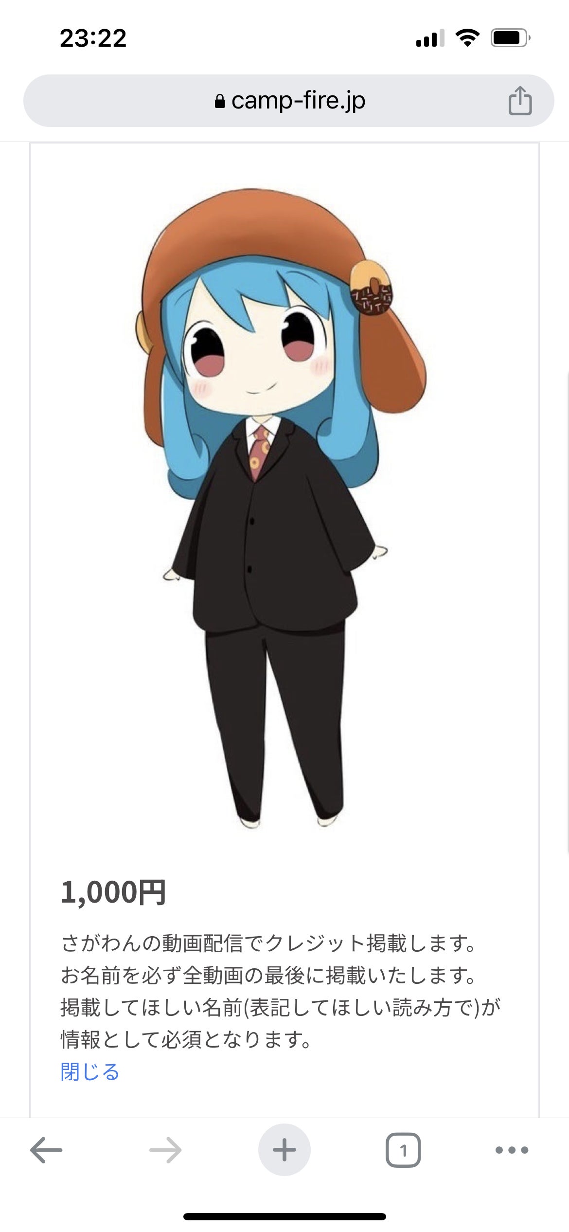 1000円、さがわんの動画へクレジット掲載(配信終了時にお名前を載せます)