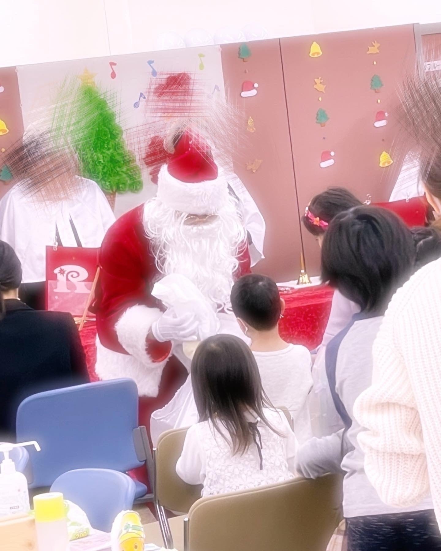 地域のマスコットキャラクター、サンタクロースの着ぐるみを着て子供と触れ合ったり