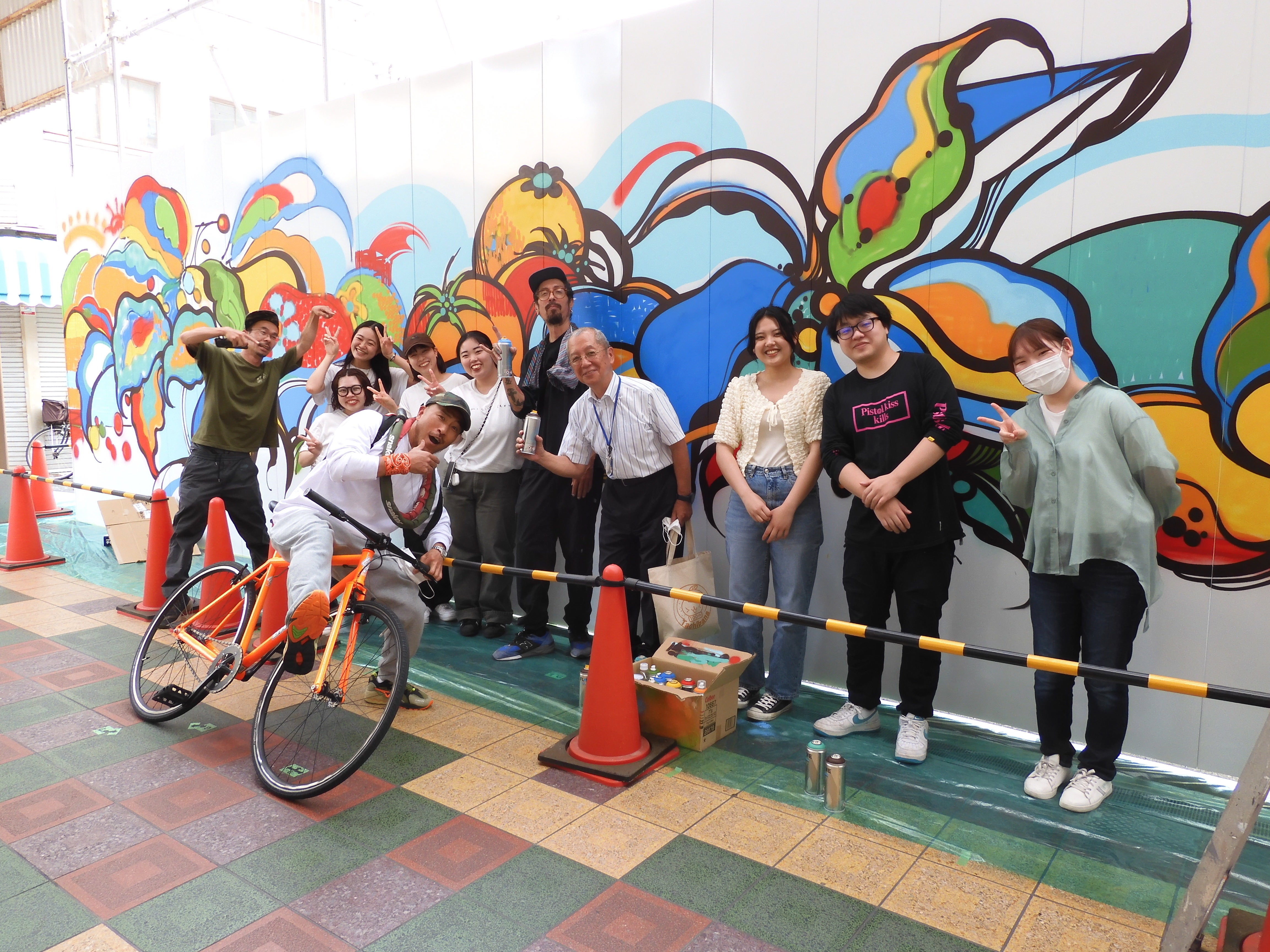 サンスーク花園商店街の壁に地域の子どもらとアートを描く