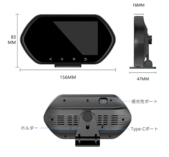 4つのボタンが搭載され、ワンタッチで画面の切り替えや機能選択など様々な操作が可能です。