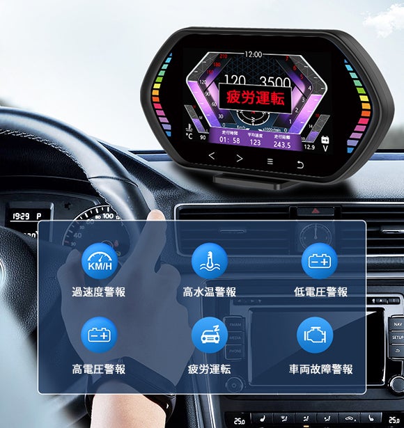 安全な運転のため、KuoWei F12は6種類の警報機能を搭載しています。異常値を検出すると警告アラームを鳴らし、車両や運転状態を知らせます!