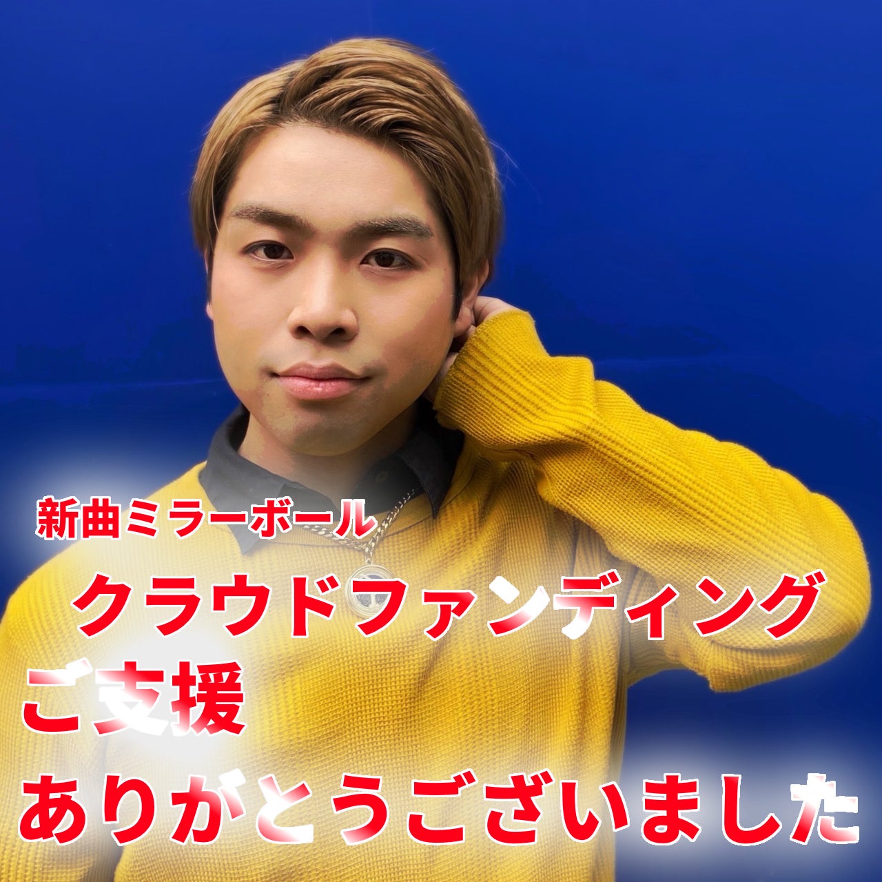 皆様こんばんは!1stシングル「ミラーボール」制作プロジェクトクラウドファンディングにご支援頂きありがとうございました‼開催時コロナにかかったりなど色々なトラブルがあった今プロジェクトでしたがおかげさまで160%128000円のご支援を頂きました。最終目標150000円には届きませんでしたがこれで新曲をミラーボール含め2曲作ることが出来ます‼ありがとうございます!!これから新曲の制作をスタートしていきます‼最後まで頑張って参ります改めましてご支援拡散ありがとうございました‼