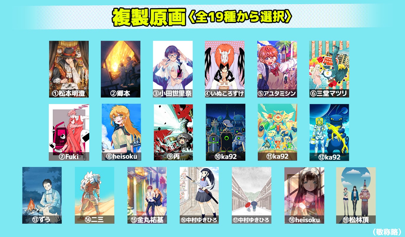 Fuki、heisoku、ka92、アユタミシン、いぬころすけ、ずう、郷本、金丸祐基、三堂マツリ、小田世里奈、中村ゆきひろ、二三、丙、松本明澄