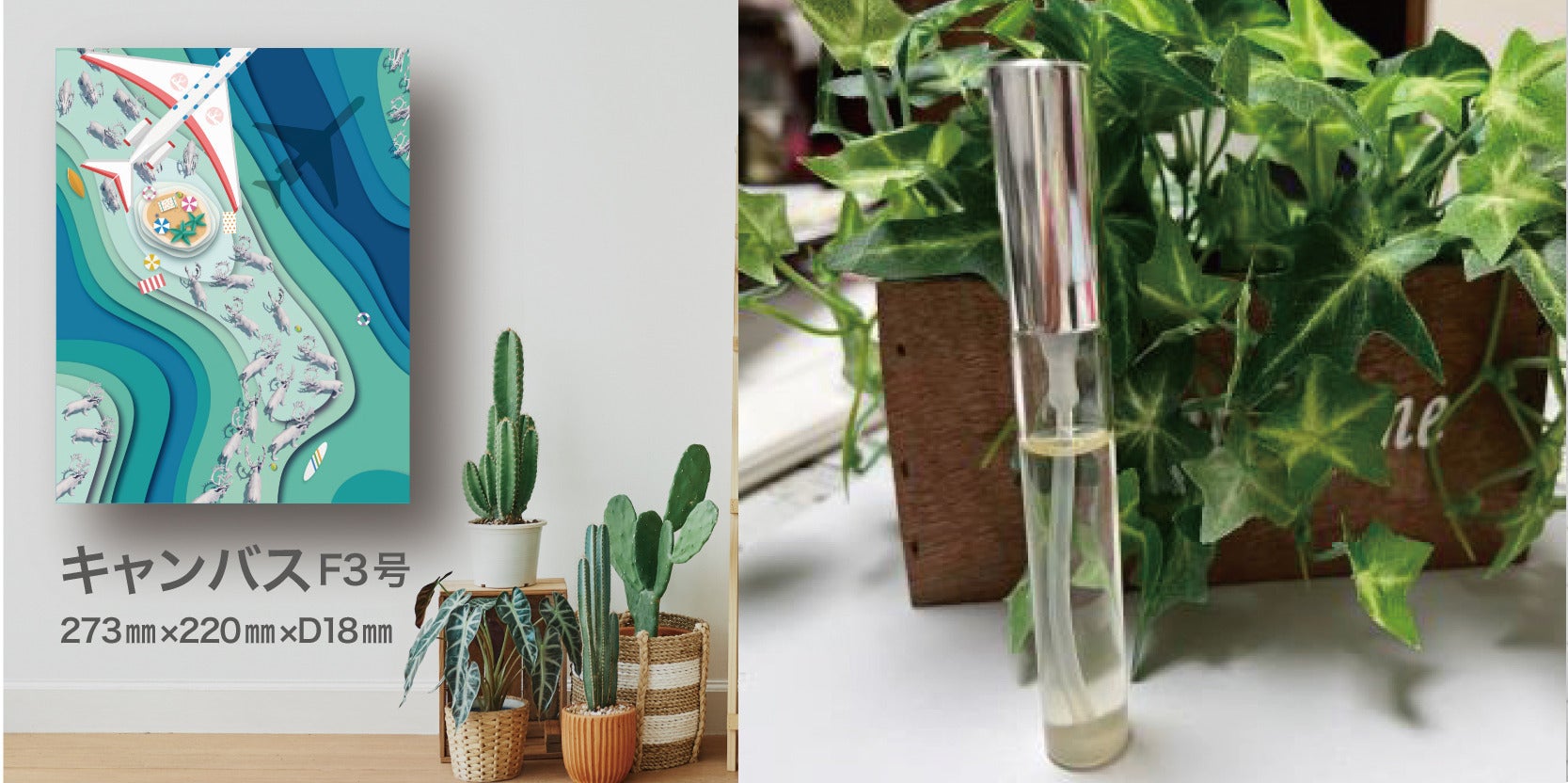 F3号サイズ(273×220mm)のキャンバスアート+アートに合わせてブレンドされたスプレータイプアロマ(7mg)のセットとなります。