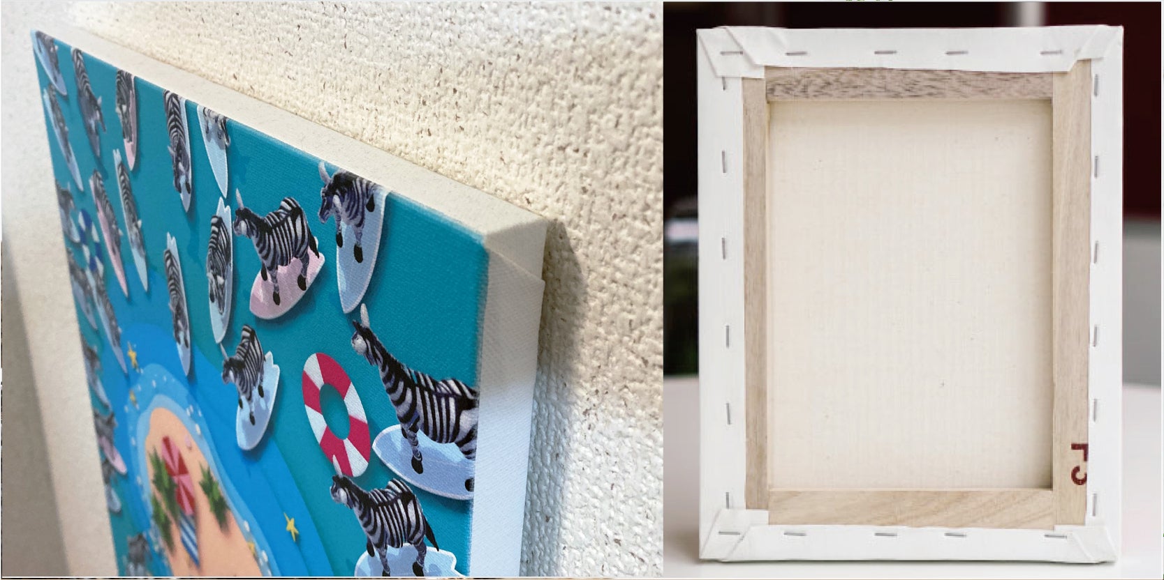 その名の通り、絵画用キャンバスを使って作られたアート作品。、UV対応のインクを活用して、キャンバスに直接アートを展開したものです。