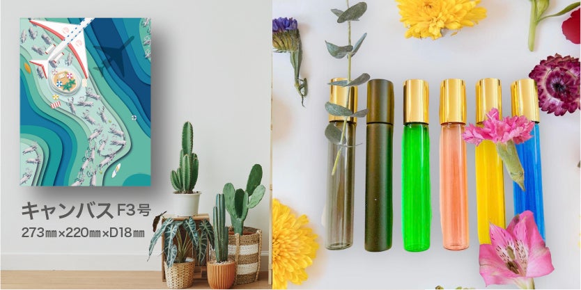 F3号サイズ(273×220mm)のキャンバスアート+アートに合わせてブレンドされたスプレータイプアロマ(7mg)のセットとなります。