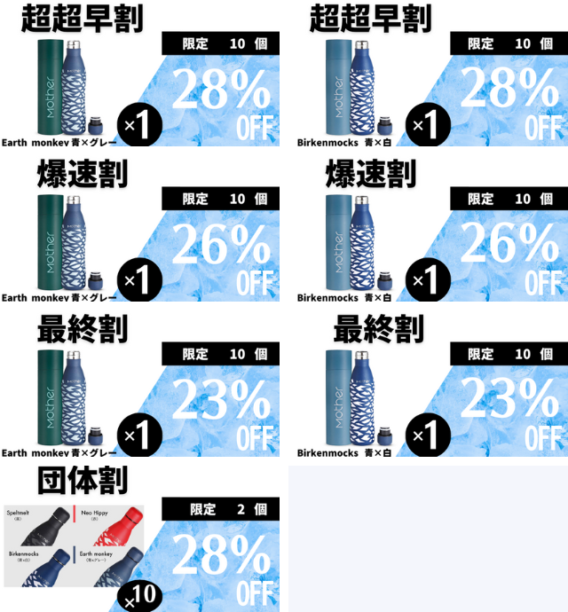 2023/08/18 13:58こんにちは、ローズピヴォイン合同会社です。台風のあと、お盆のあとですが皆さま日常はいかがでしょうか?少しでも穏やかであって欲しいなと願っております。配送停止、受付停止となっていた鹿児島、沖縄のご支援者様への出荷も全て終わりました。配送に少し時間が掛かるかもしれませんが、お届けまで今しばらくお待ちください。届いたご支援者様から、「かわいい!」「持ちやすい!」などのお声を頂戴しておりホッと胸を撫で下ろしています。このあとは通常価格ではありますが、自社サイトやAmazonなどでの販売をしていきますのでよろしくお願いいたします。LINE公式でお得な情報などはご案内しておりますのでこちらもよろしくお願いいたします。届いたボトルが、皆さまの日常のよきお供となれますように!保冷に保温に活躍しますので、1年を通してご愛用頂けますと幸いです。ご支援誠にありがとうございました!ローズピヴォイン合同会社スタッフ一同 もっと見る