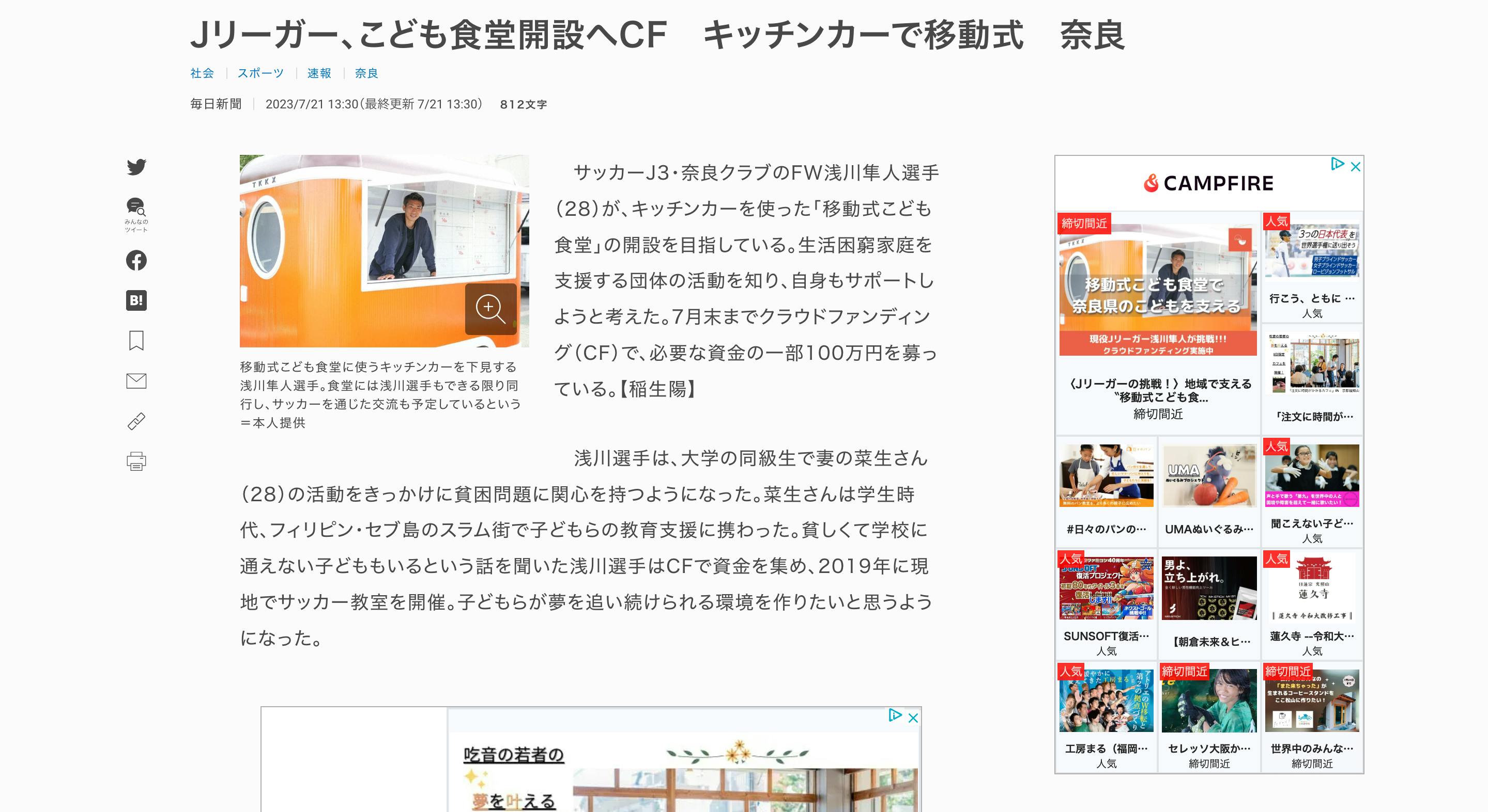 先日は毎日新聞さんにこのプロジェクトについて取り上げていただきました。