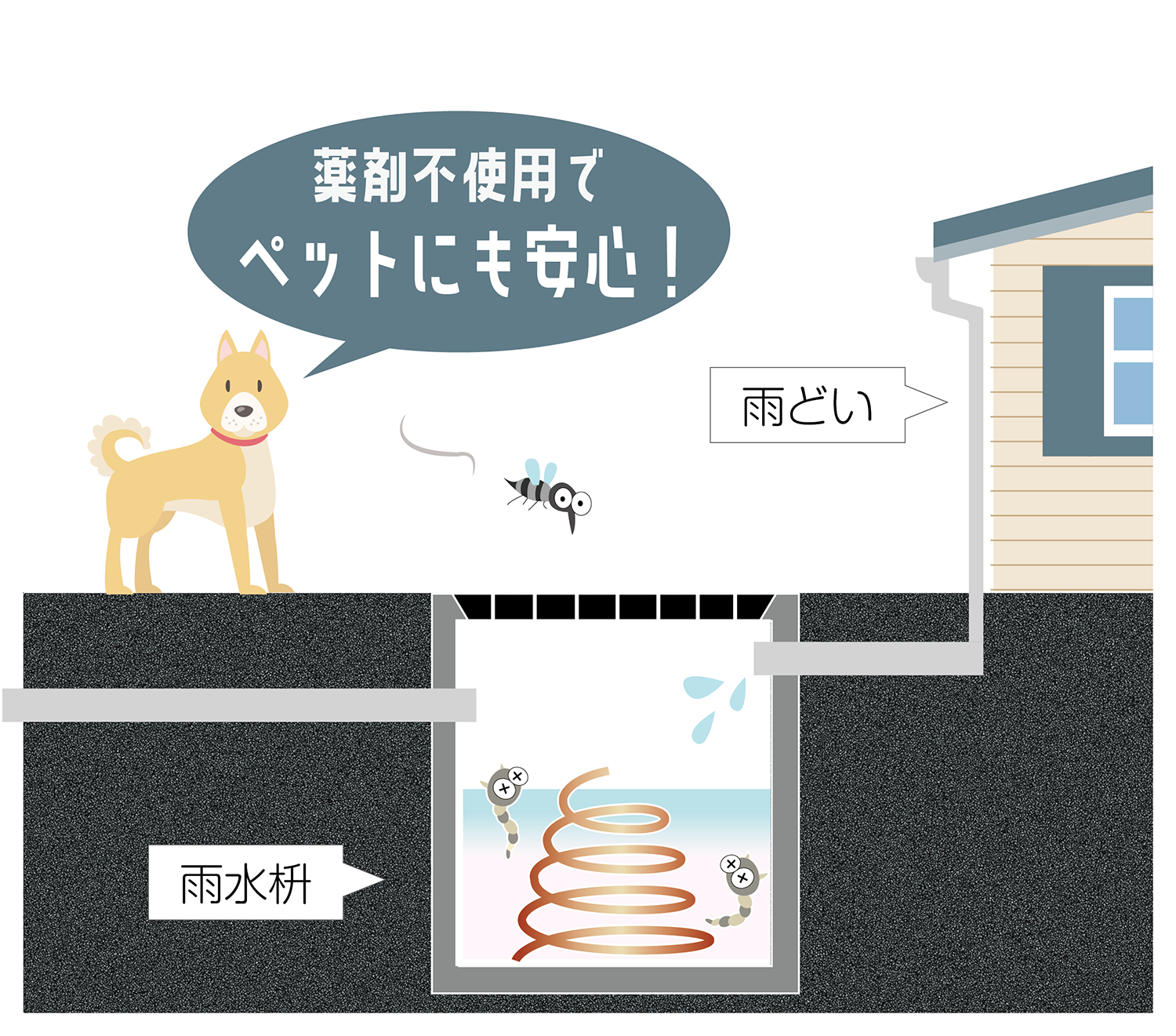 蚊が水の中に卵を産むという特性を利用しているので他の生物への影響がほとんどない。