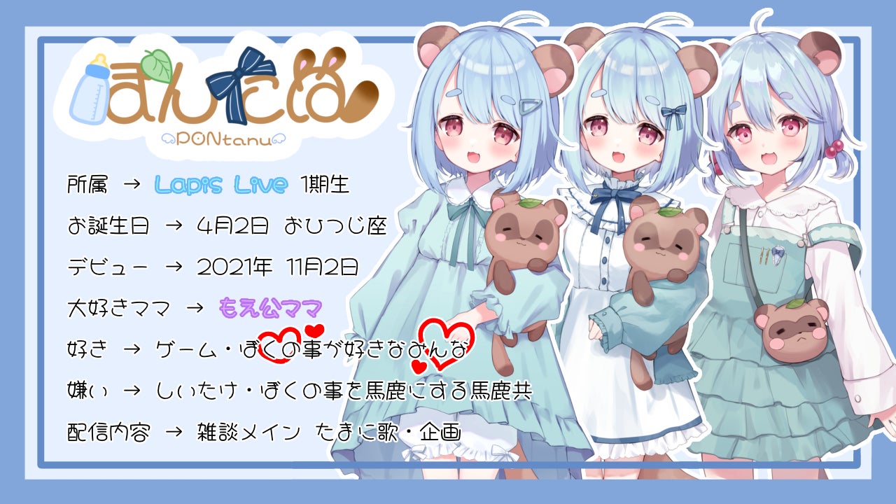 現在、キャラライブアプリ「IRIAM」にて配信活動をしている、ぽんたぬと申します!