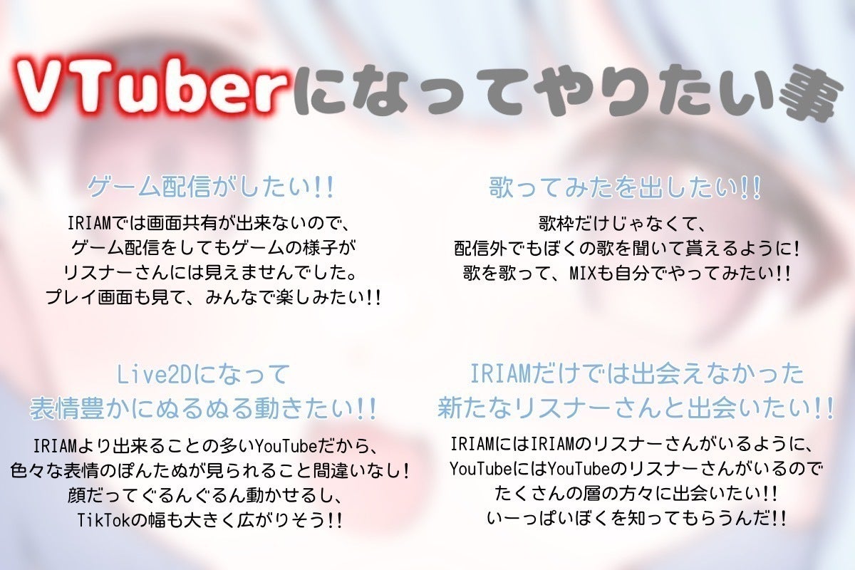 今までIRIAMでリクエストをいただいても出来なかったことや、やりたくても出来なかったことが出来るようになれば、さらに楽しい!好き!がいっぱいの配信になるはずです✨✨