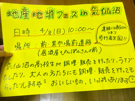 今日はビックハウス10:30〜17:00、海の市10:30〜15:00で地産地消フェスの告知と募金を行ってきました!