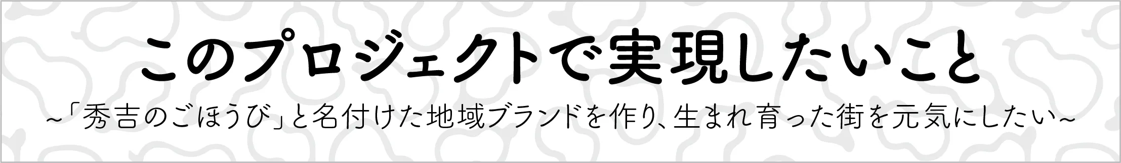 今回は、「秀吉のごほうび」と名付けた地域ブランドを作り、生まれ育った街を元気にしたい。