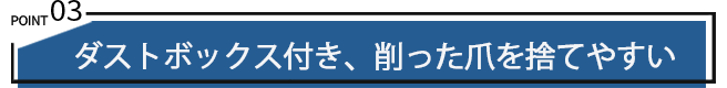 削った爪は本体内部に収集されるため、散らばる心配はありません。