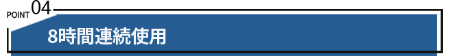 ・1回のフル充電で約2ヶ月の待機時間があり、8時間連続使用が可能!