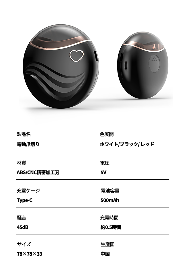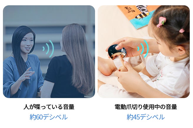 人が会話をするときの音量は、通常60〜65デシベル程度です。爪を切る際の音量はわずか45デシベルで、会話よりも低くなっているため、使用中の音が他人に迷惑をかける心配はありません。