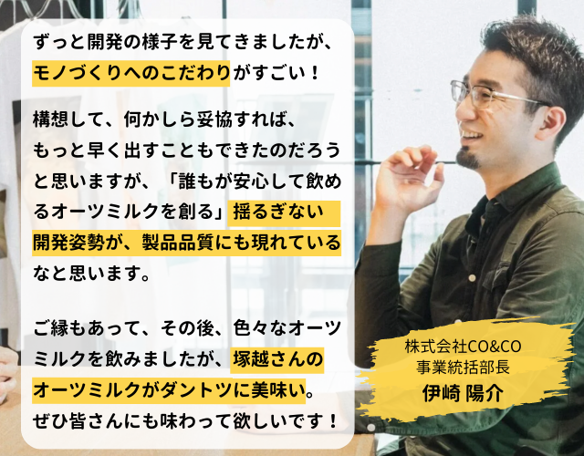 そんな声から「塚越さんがつくったおいしいオーツミルク」は生まれました!