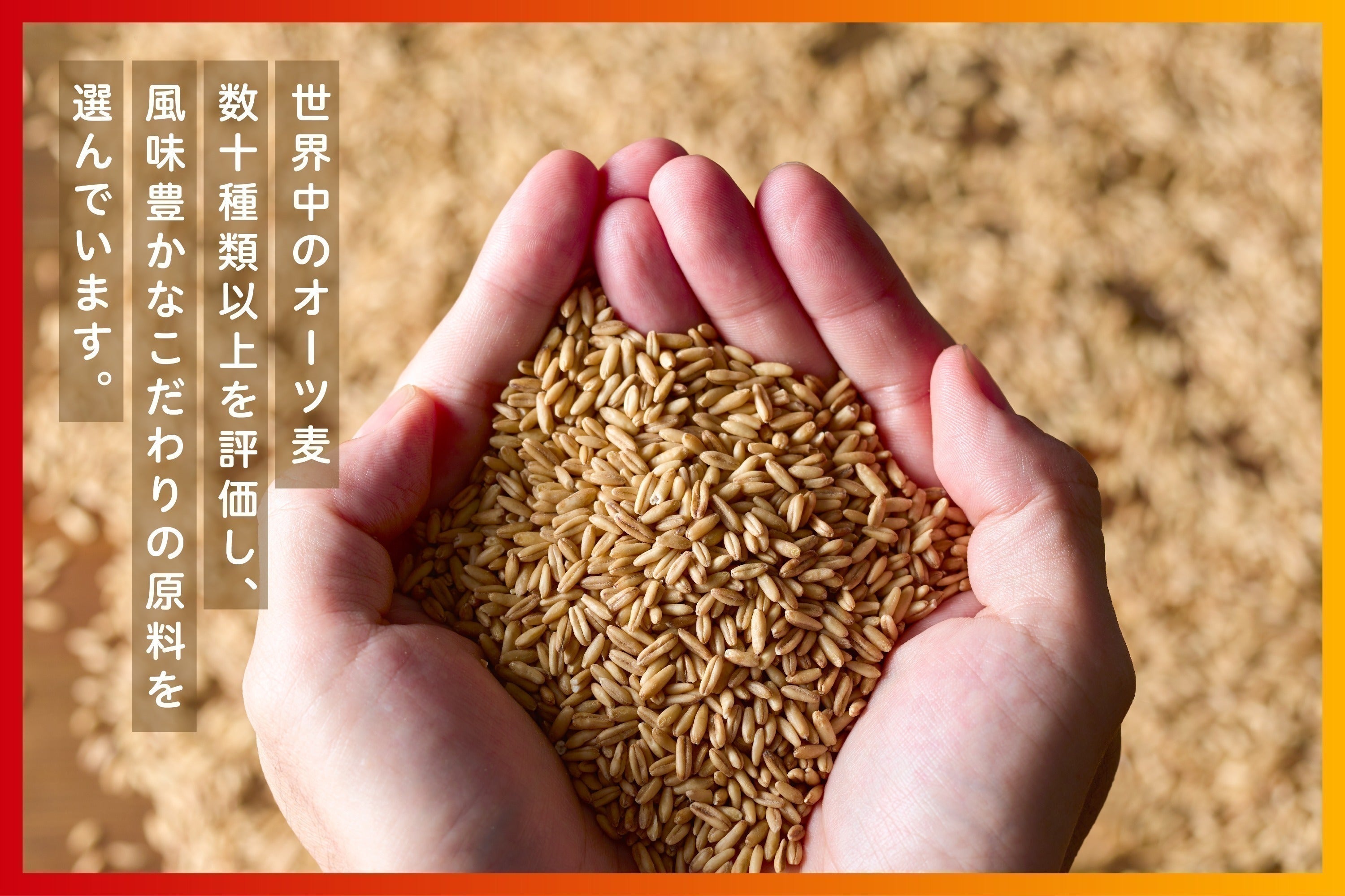 オーツ麦は「産地(カナダ、オーストラリア等)」と「加工タイプ(ロールドオーツ、スティールカットオーツ、オーツブラン等)」によって、実は非常に多くの種類があり、ミルクにした時の味や香りが様々です。