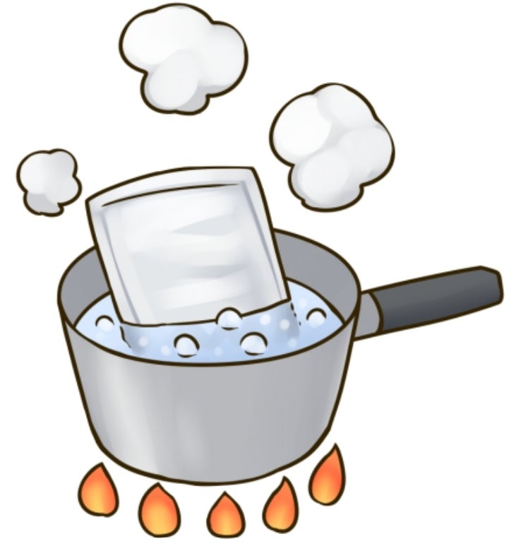 そのまま湯煎か、レンジなら耐熱容器に移してふんわりラップして数分で出来上がり♪