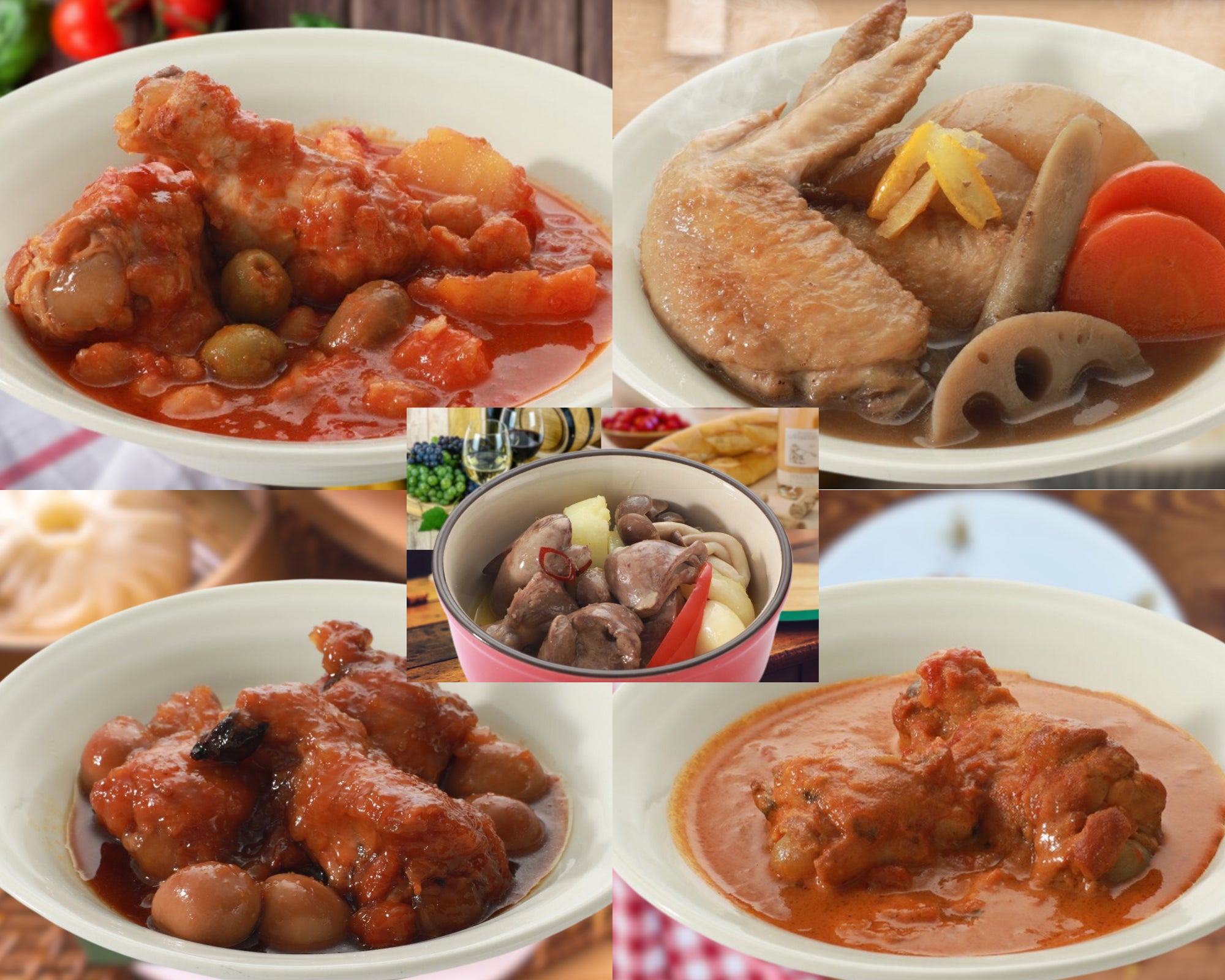 鶏肉、野菜、キノコの旨みを十分引き出すため、水は一切加えていません。ワインやビールと一緒に合うよう、やや濃いめの味付けで仕上げました。