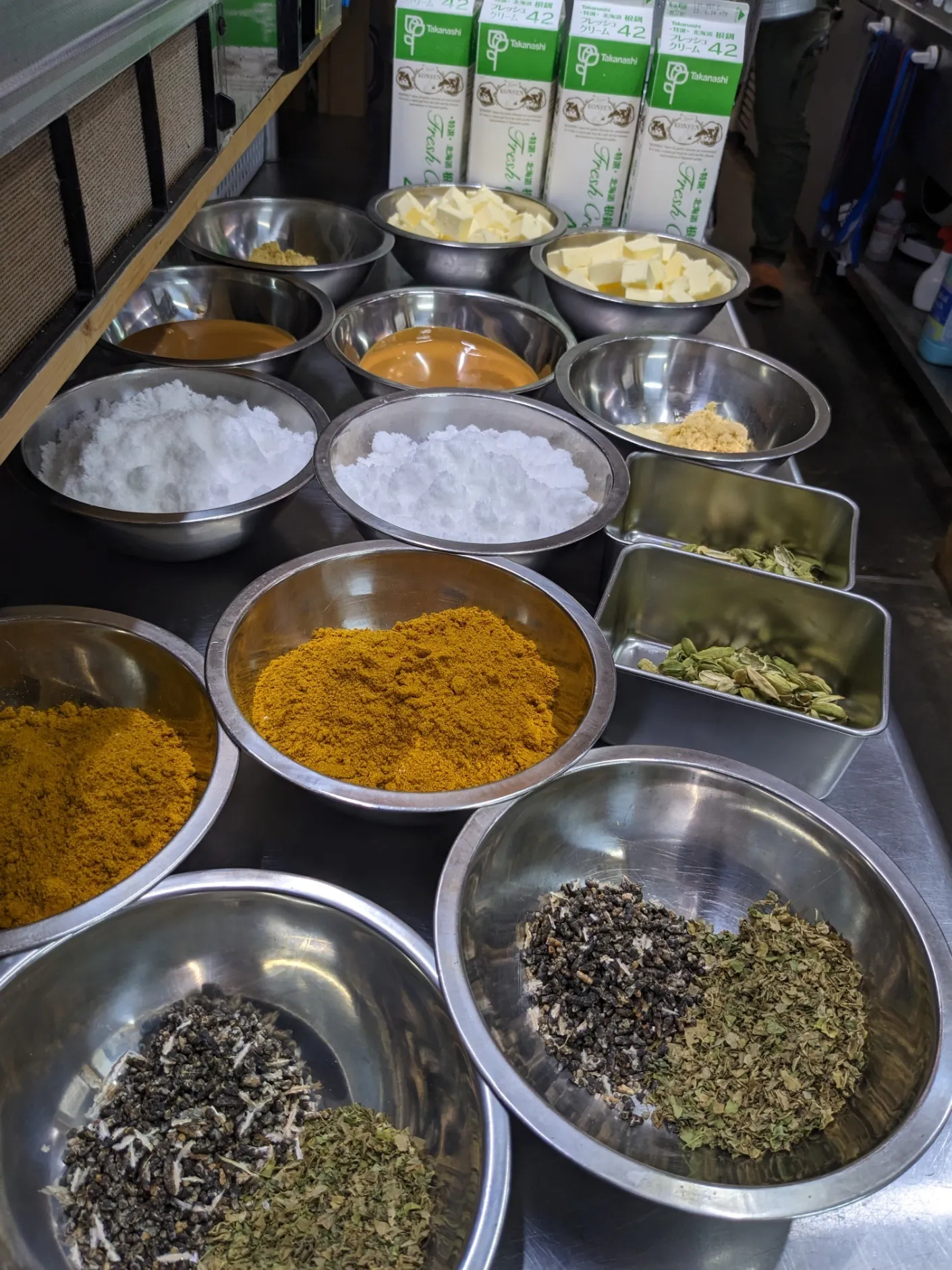 バターや生クリーム、ヨーグルト、トマトの水煮などなどの計量もして。