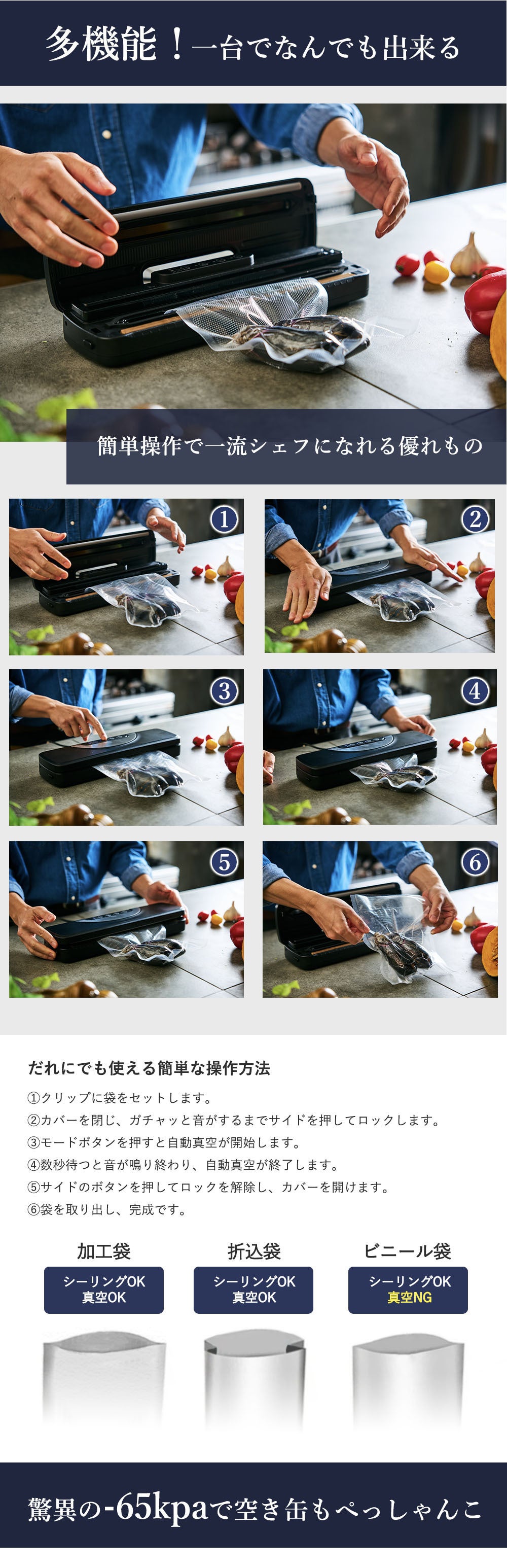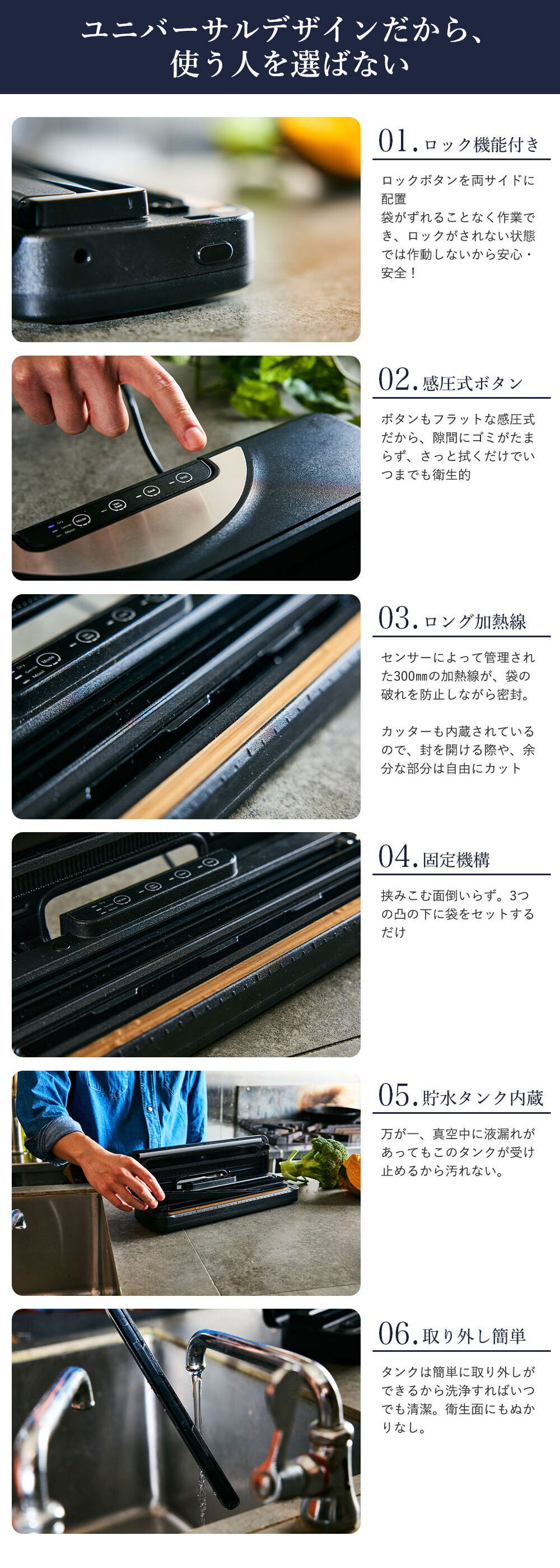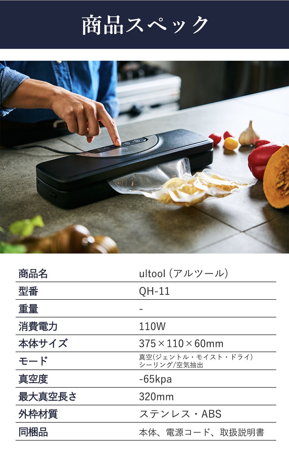 ultoolはどなたでも使いやすいシンプルなデザインながら、汚れやすい部分は取り外して水洗いが出来るなどの利便性も兼ね備えた多機能真空パック機です!