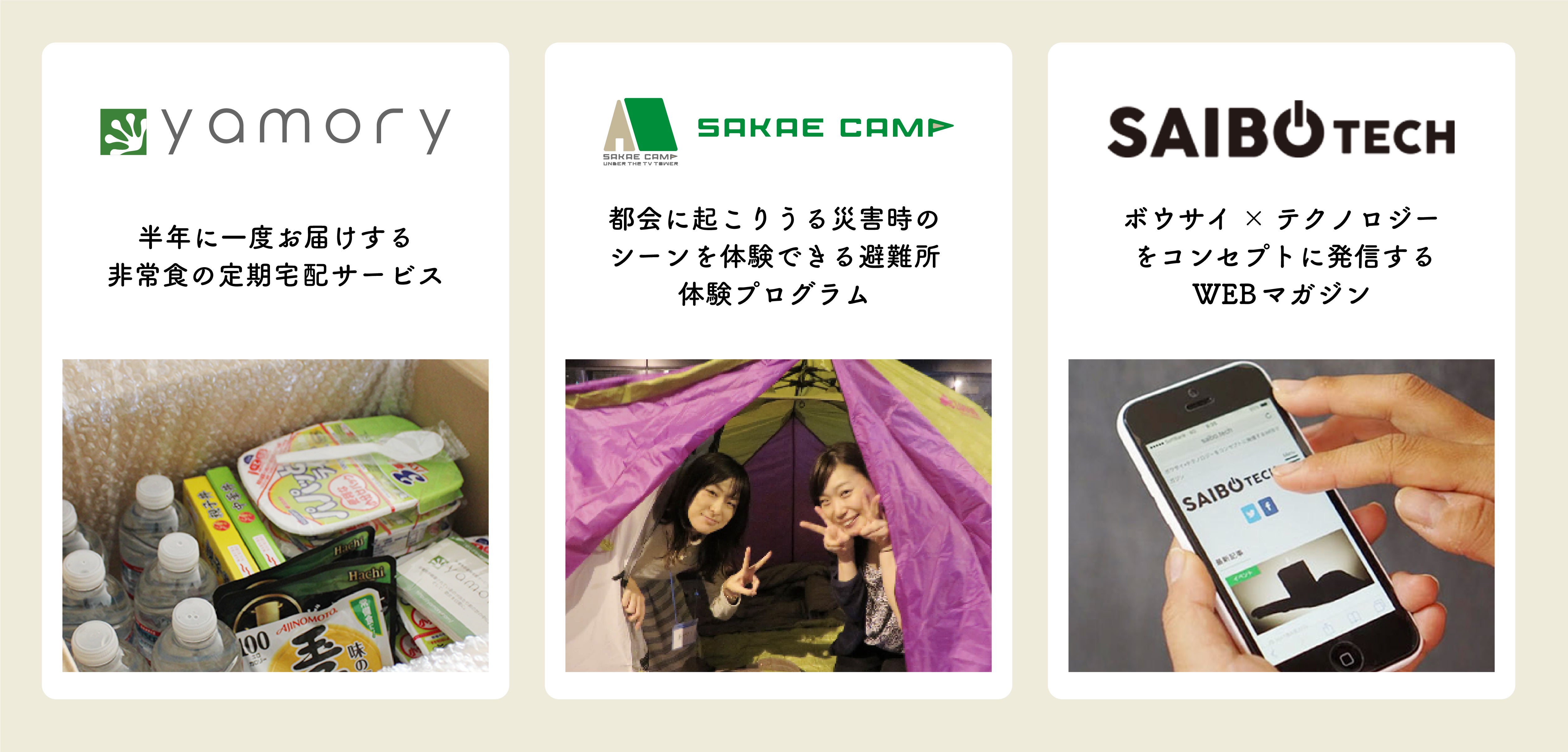 みなさんはじめまして。ボウサイをデザインする・yamory(やもり)です。2012年にはじまった「非常食宅配サービス」を皮切りに、これまで様々なボウサイ事業をデザインを切り口に展開してきました。