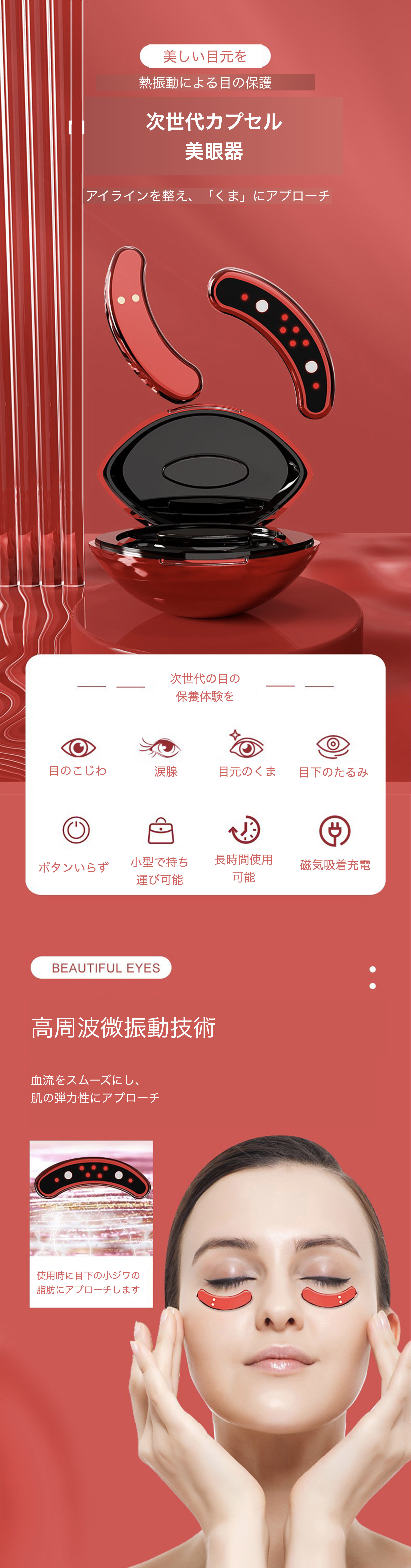 今回の「MINI Eye massager」は、普段私が目薬やアイマスク、アイマッサージャーを使っている中で、
