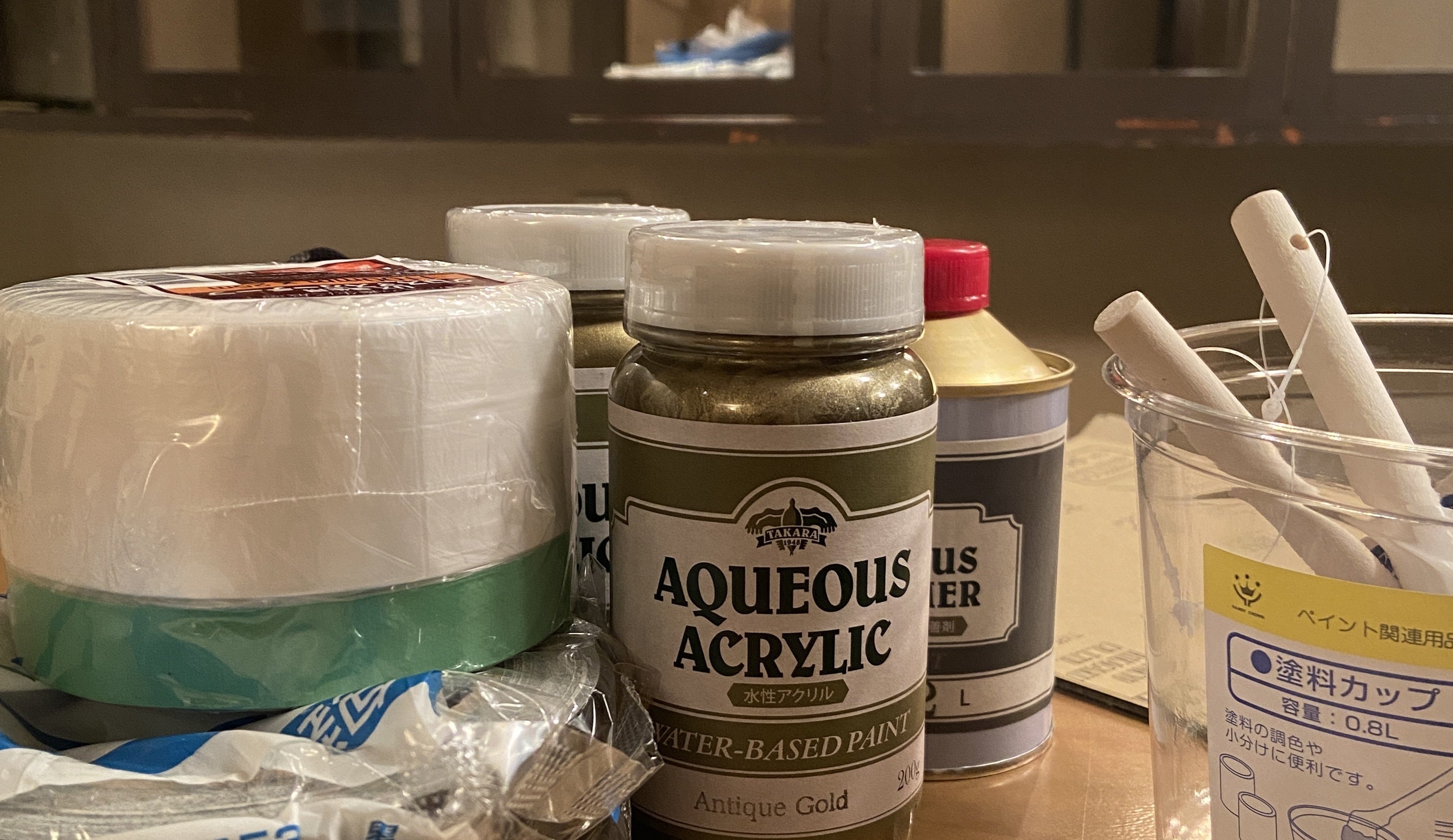 カウンターの色が比較的薄めの茶色のため、あまり映える感じがしませんが、もう少し濃い茶系の色にする予定なので、内装が終わればこのアンティークゴールドの色もいい感じになると、思います!