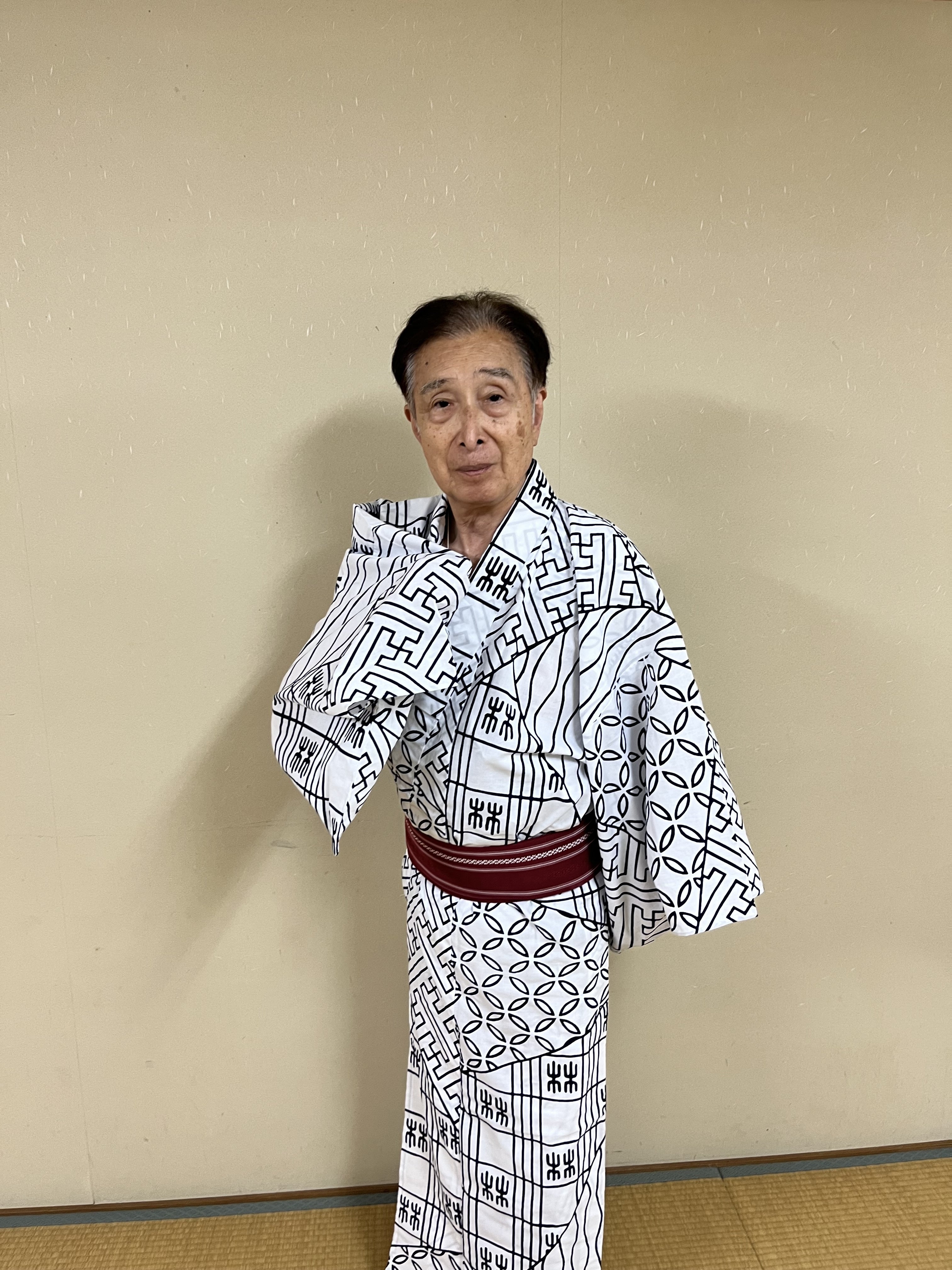 ・林与一稽古使用済浴衣、帯セット。サイン入りパンフレット、手拭付き。20万円