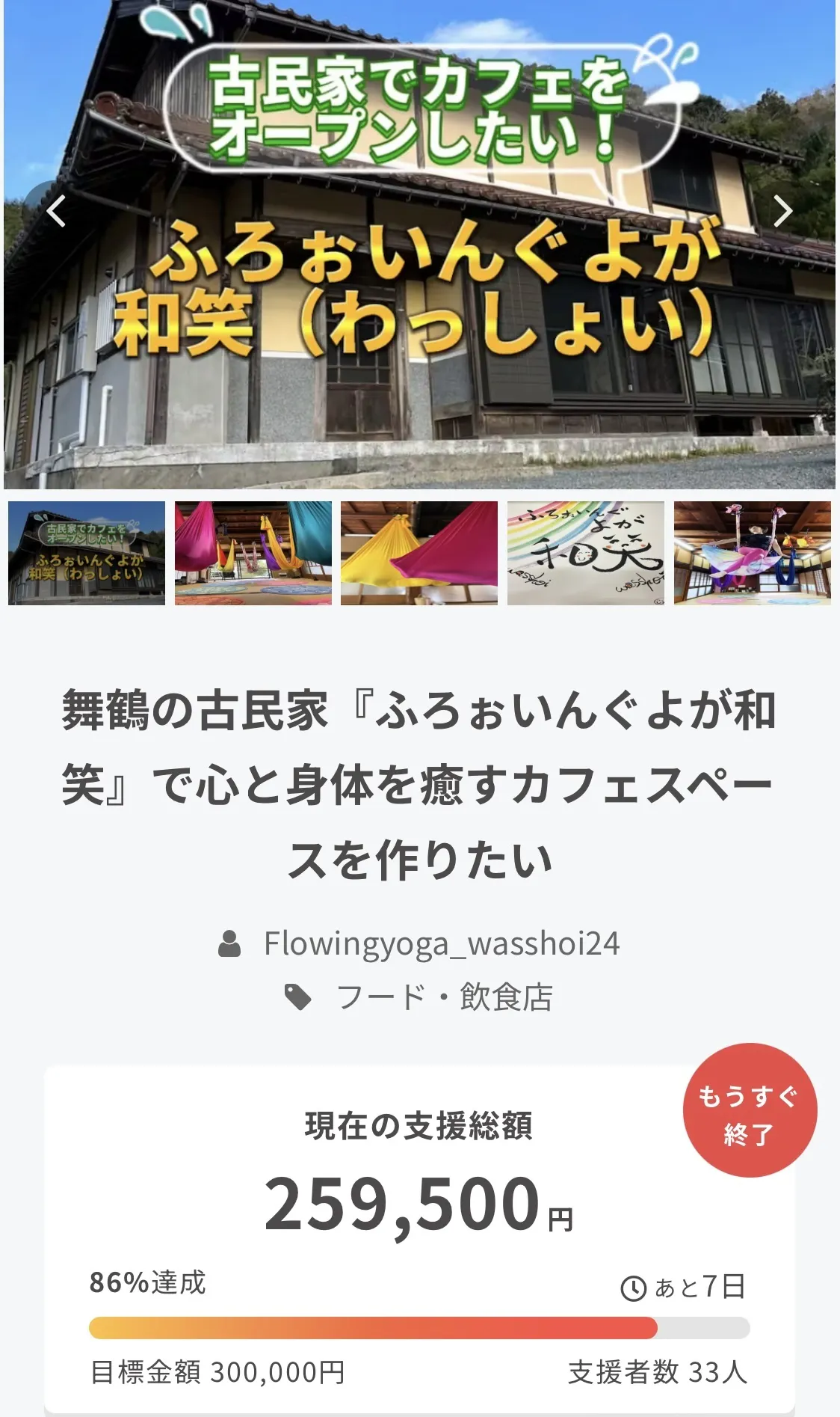 終了まで残り7日となり、目標金額の86%を達成しました。