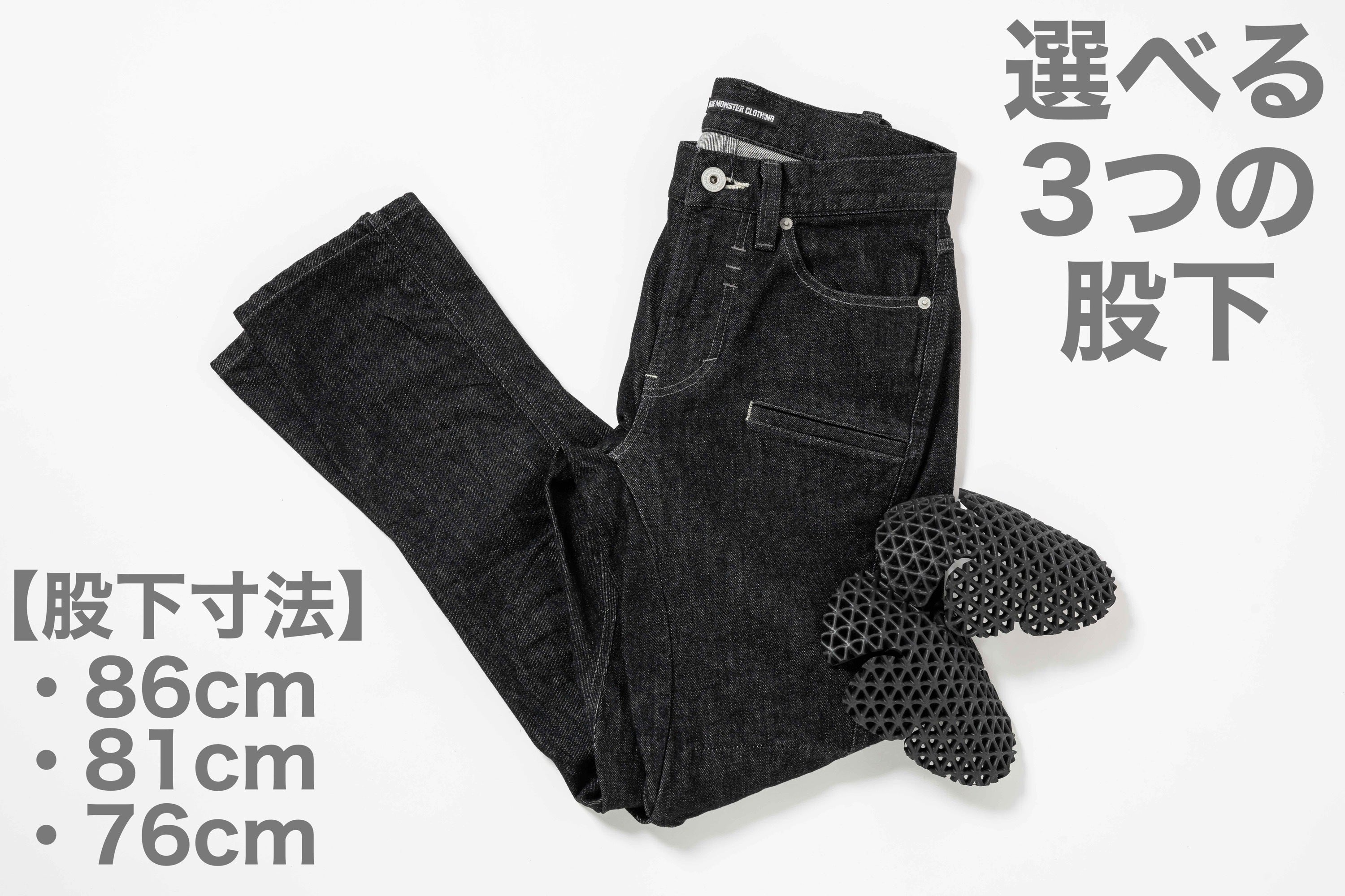 ライダーの要望に応えて、完全日本製【ライダー専用ブラックジーンズ】は股下寸法を3つから選べます!